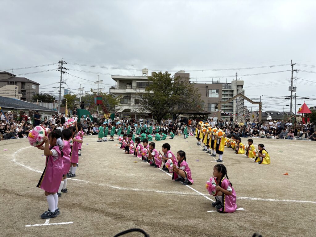 運動会、今年は異例の雨のため、2日間に分けての開催。でも、お天気に負けず、子ども達も元気いっぱい練習の成果を出し切ることができました。年少さんのダンスもとっても可愛かったです。