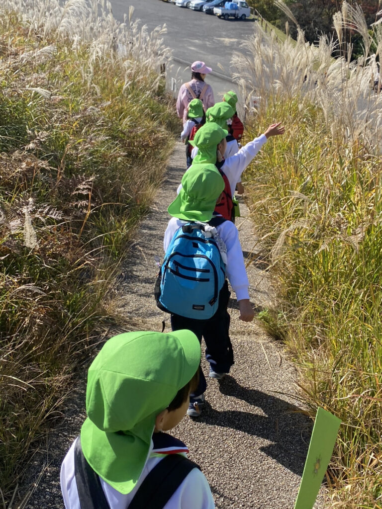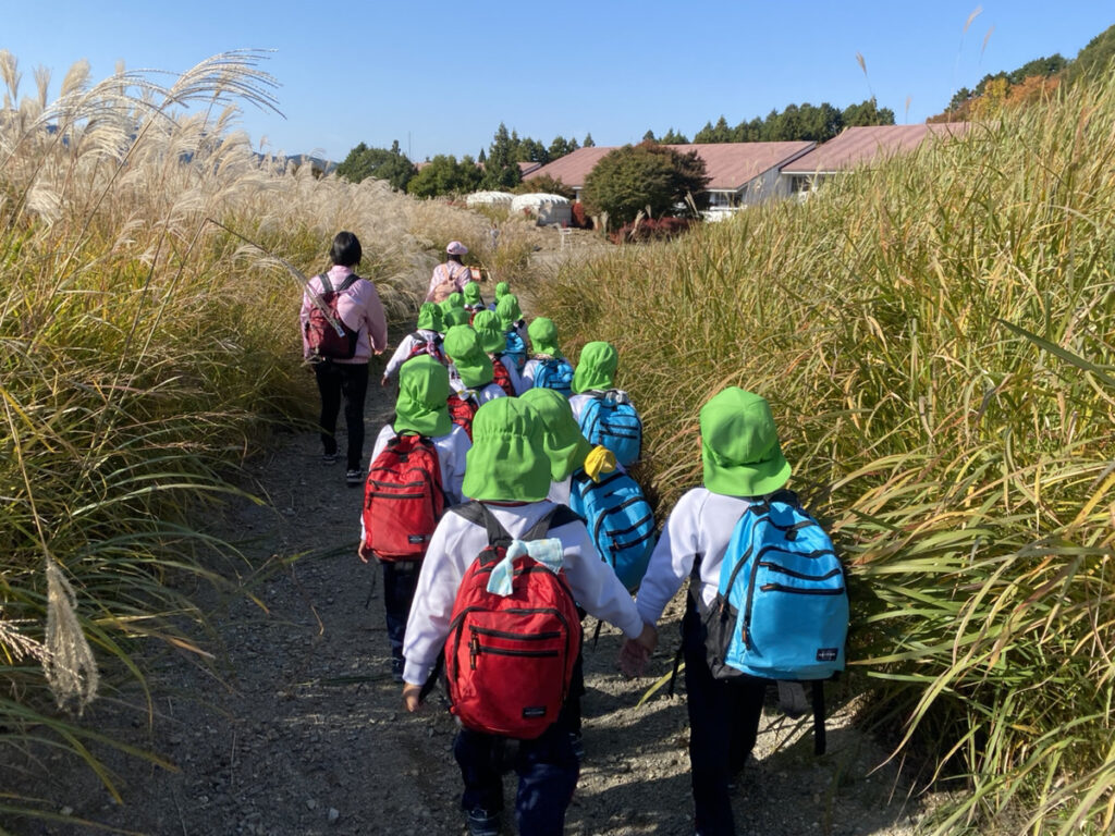 みんなより背の高いすすきの中を通って、迷路のようになった道を探検。