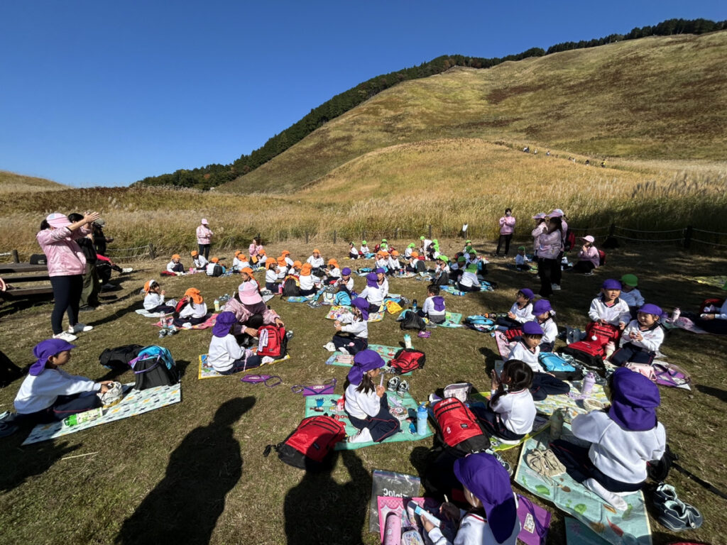 登園のころ肌寒かった天気ですが、到着までには気温も上がり、曽爾高原につく頃には山手にもかかわらず暖かいくらいの快晴に。