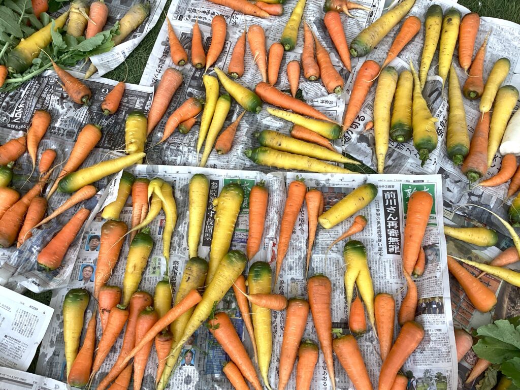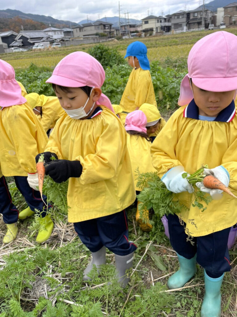 今回の収穫担当は年中さん。ニンジンも収穫して・・・。
