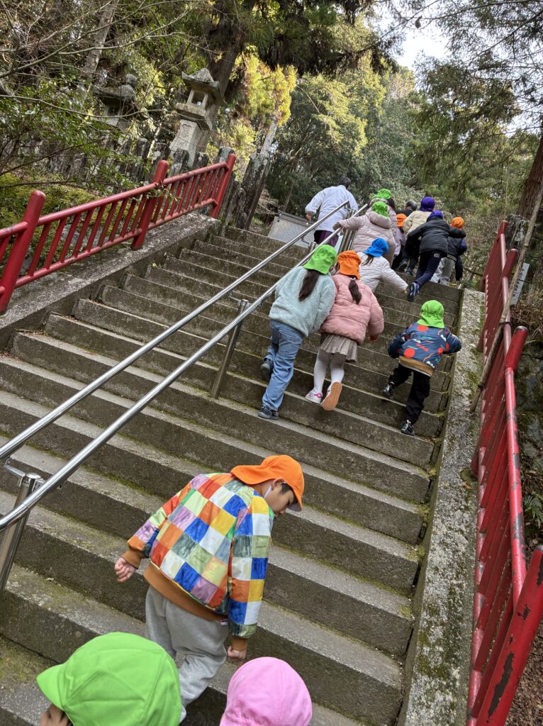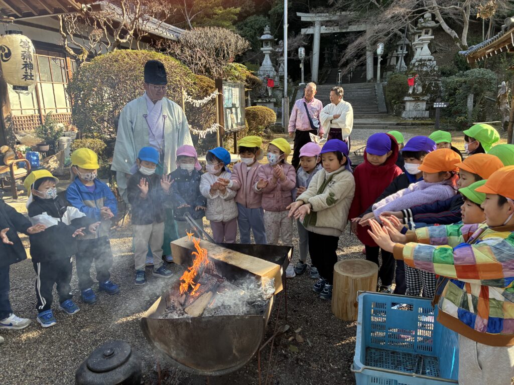 本殿で、祈祷もしていただき、気持ちも一新!!2026年もみんな元気で楽しく過ごしたいと思います。寒かったので暖もとらせていいただきました。子ども達にとっては興味津々。いろんなことを発見し体験しています。今日は園に破魔矢も頂きました。園に飾らせていただきたいと思います。等彌神社の皆様ありがとうございました。
